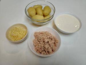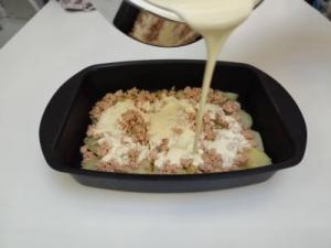 Disposez une couche de rondelles de pommes de terre, puis le saumon et y