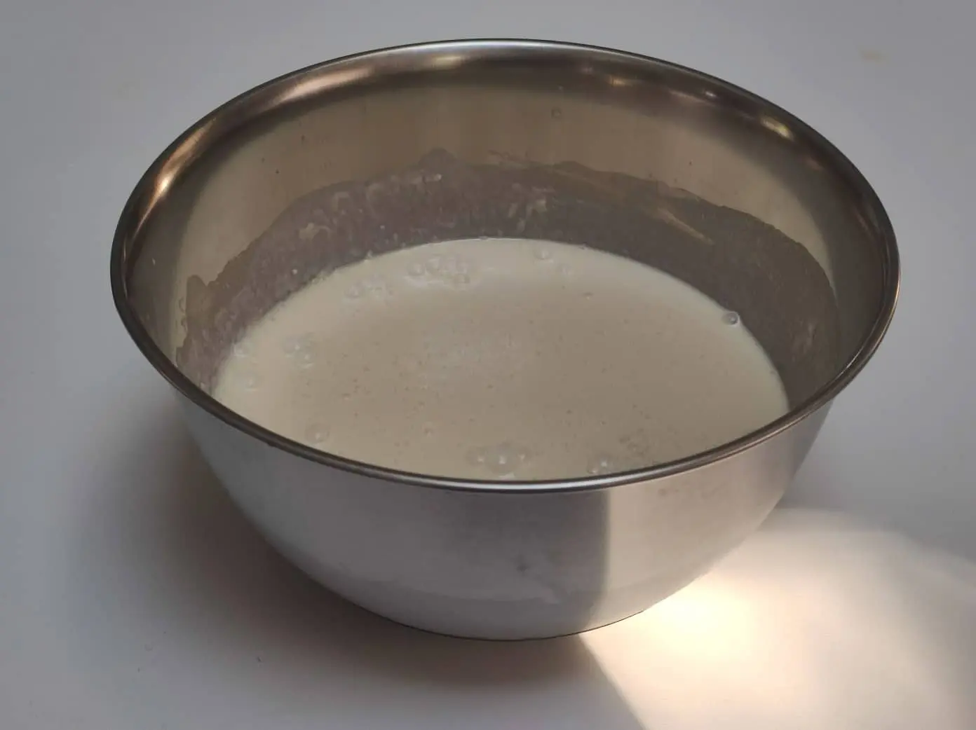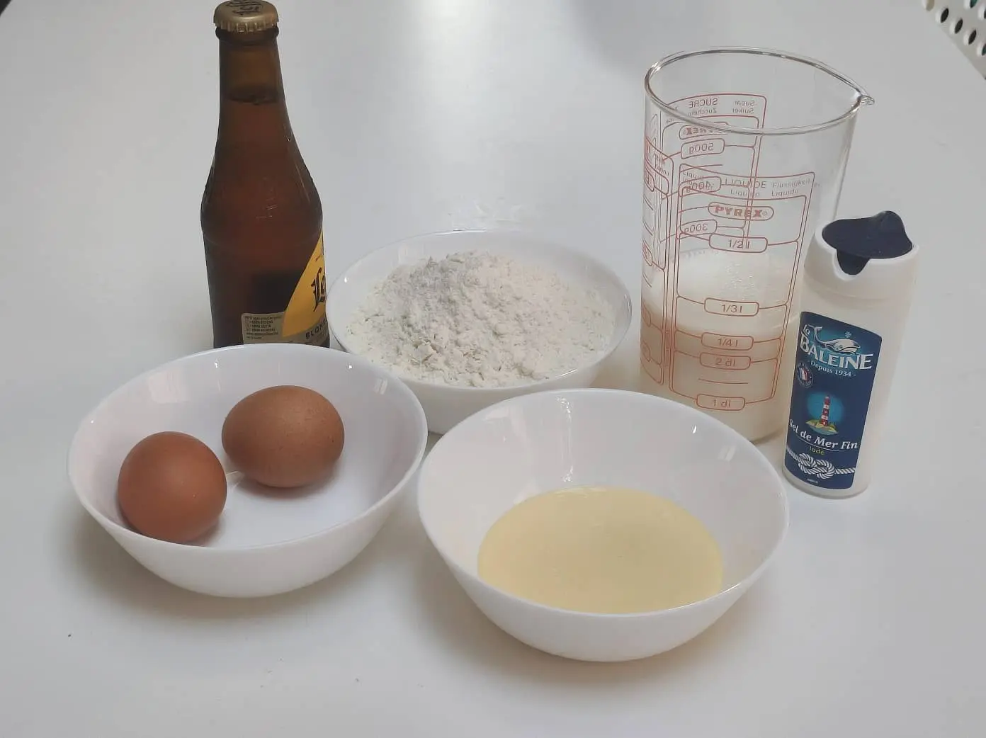 Ajouter le lait, la bière et le beurre et mélanger jusqu'a obtenir un mélange bien homogène
