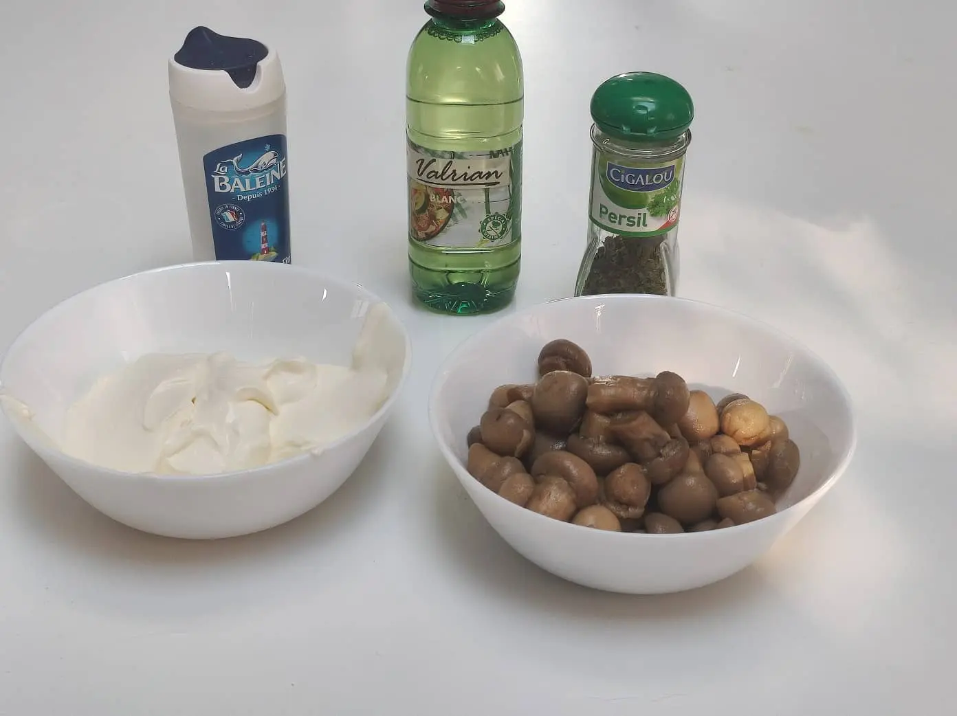 Faites chauffer la crème a feu doux et ajouter le vin blanc et les champignons