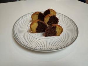 Verser dans le moule a gateaux a muffin en alternant les couches et cuire sur le programme 2 pendant 30 minutes , verifier la cuisine avec un couteau il doit ressortir propre